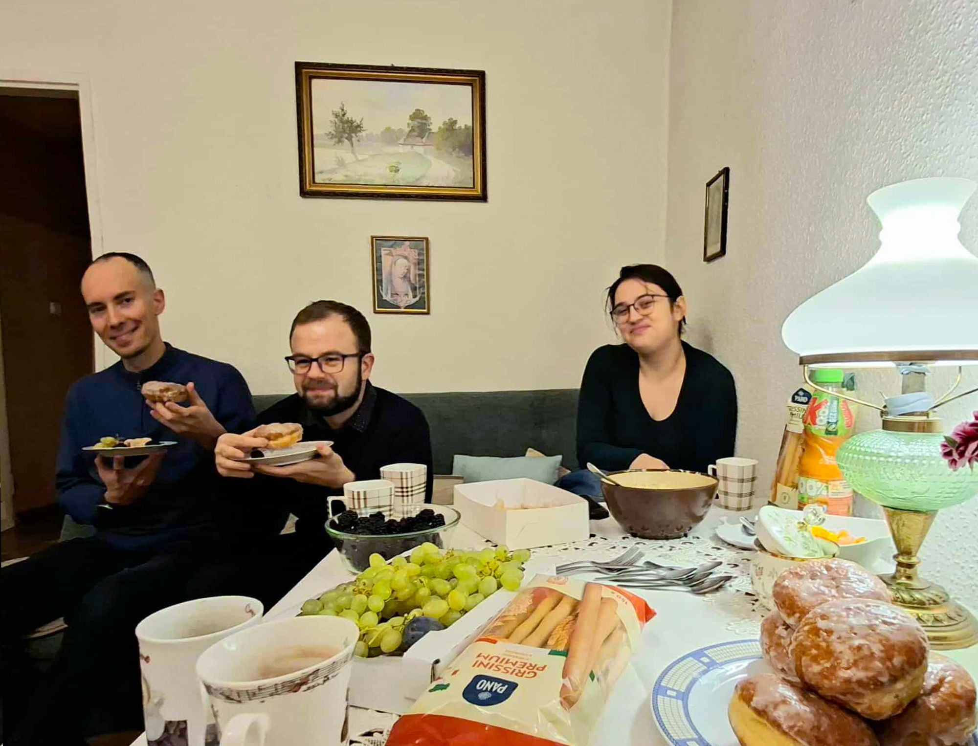 Przy integracyjnym poczęstunku, porozmawialiśmy o naszej działalności w wolontariacie misyjnym, historiach naszego życia i o nas samych.